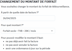 Les niveaux de forfait (TVB,TVB2 et TVB2.5) Peuvent être modifié jusqu’au moment de la facturation Vous pouvez modifier à trois moment votre facture, lors de l’inclusion, lors du renouvellement ou alors avec le crayon bleu