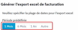 se trouve en haut à droite de la page. En cliquant dessus, une fenêtre s’ouvrira pour vous permettre de sélectionner une période d’export.